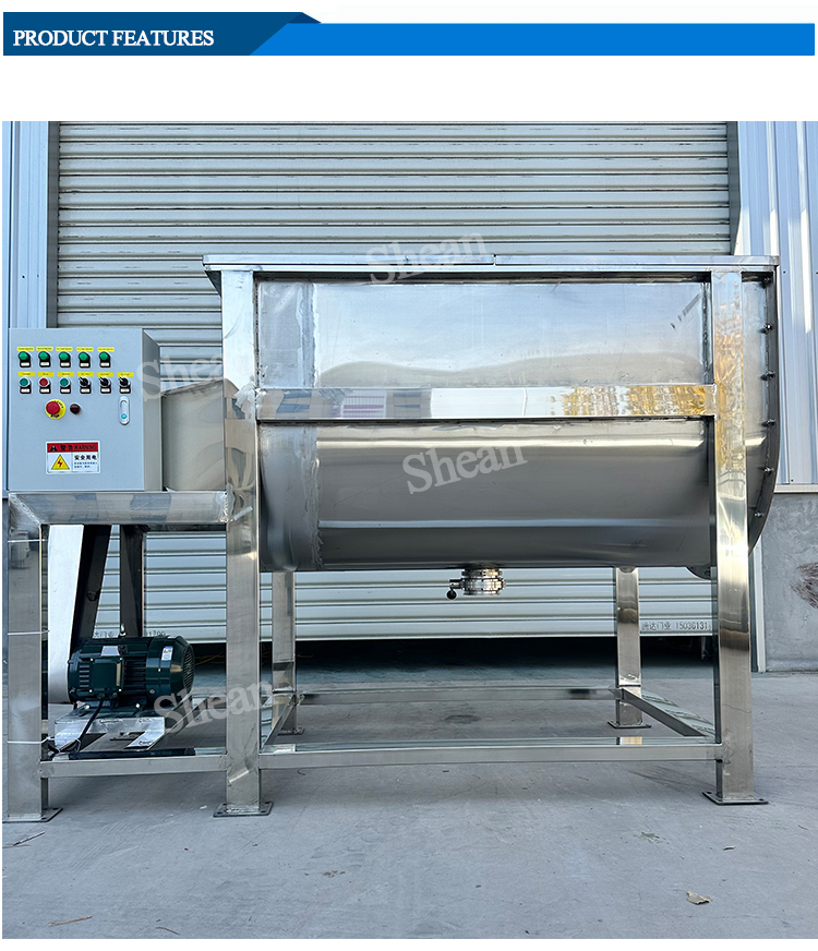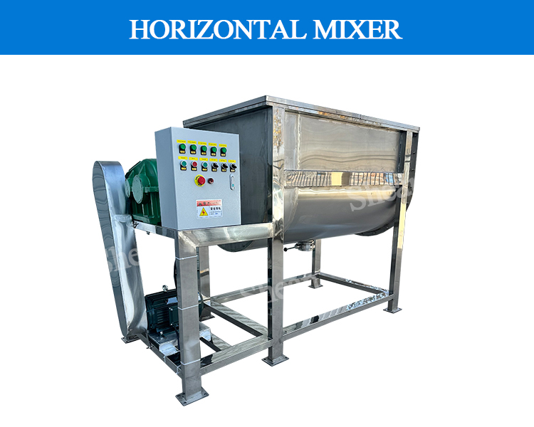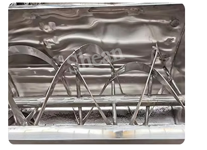 Horizontal ribbon mixer mixing blade is usually spiral belt type, 360 degrees double S-type, able to circulate along the axial and radial stirring of the material, so that the material in a short period of time to obtain rapid and uniform mixing, uniformity can be as high as 99% or more.